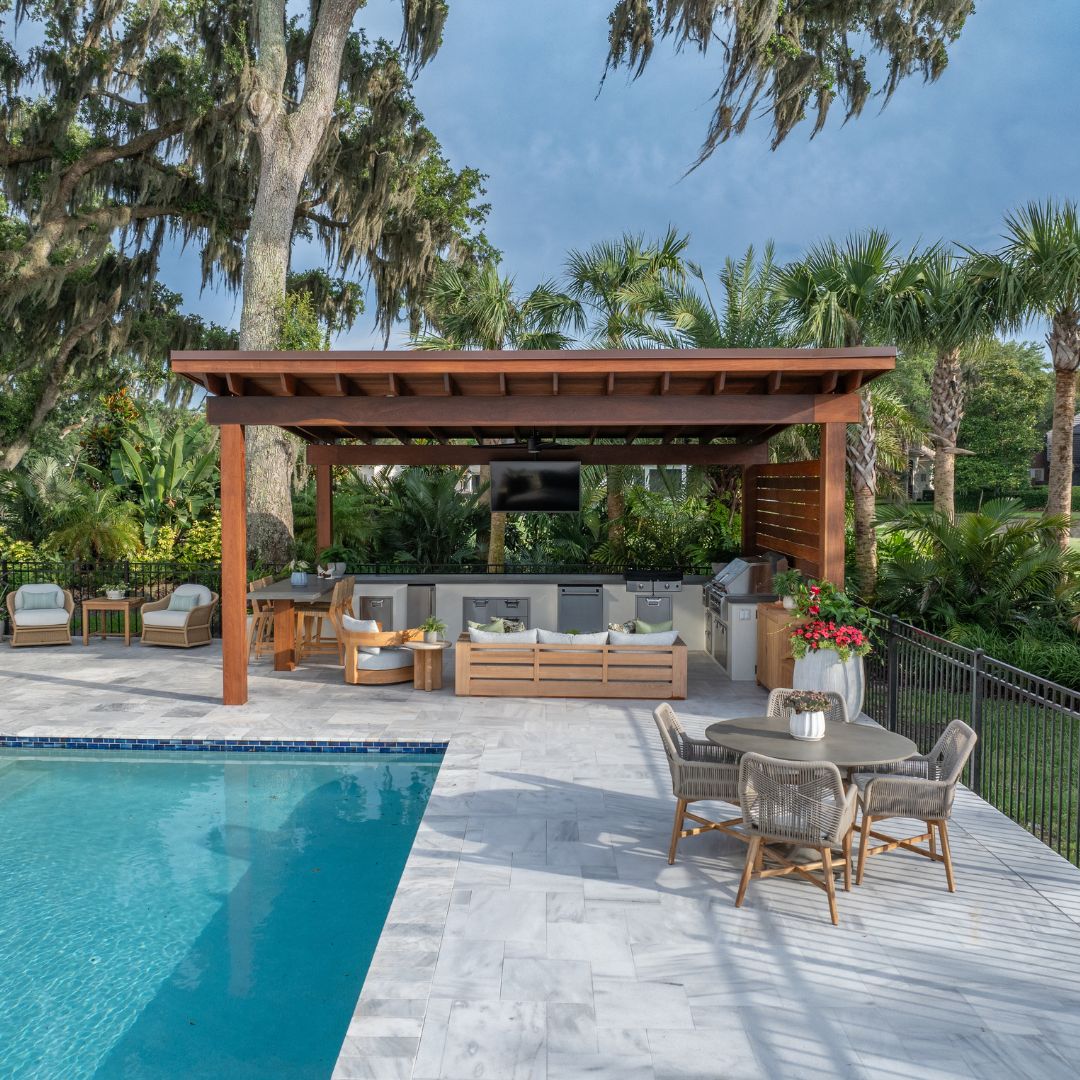 We proudly present: “The Brazilian Pavilion” A one-of-a-kind outdoor space where structure, setting, and soul come together. Hard lines meet soft light. Organic textures meet refined flow.Every element built to belong—nothing wasted, nothing random. This one was about more than just a layout. It’s how it feels when it all fits.
